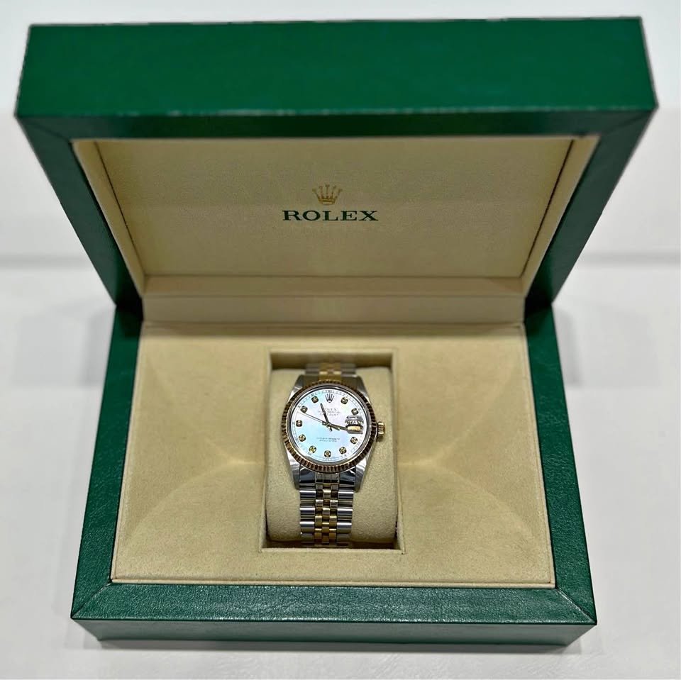 active Brand Rolex Material Yellow Gold Age Group All Ages White mother-of-pearl set with diamonds Oyster, 36mm, Oystersteel and 18kt yellow gold 1980’s edition Oyster Perpetual. (shipping is included)