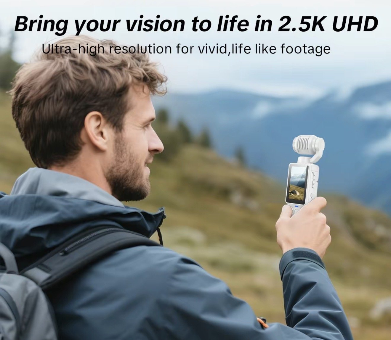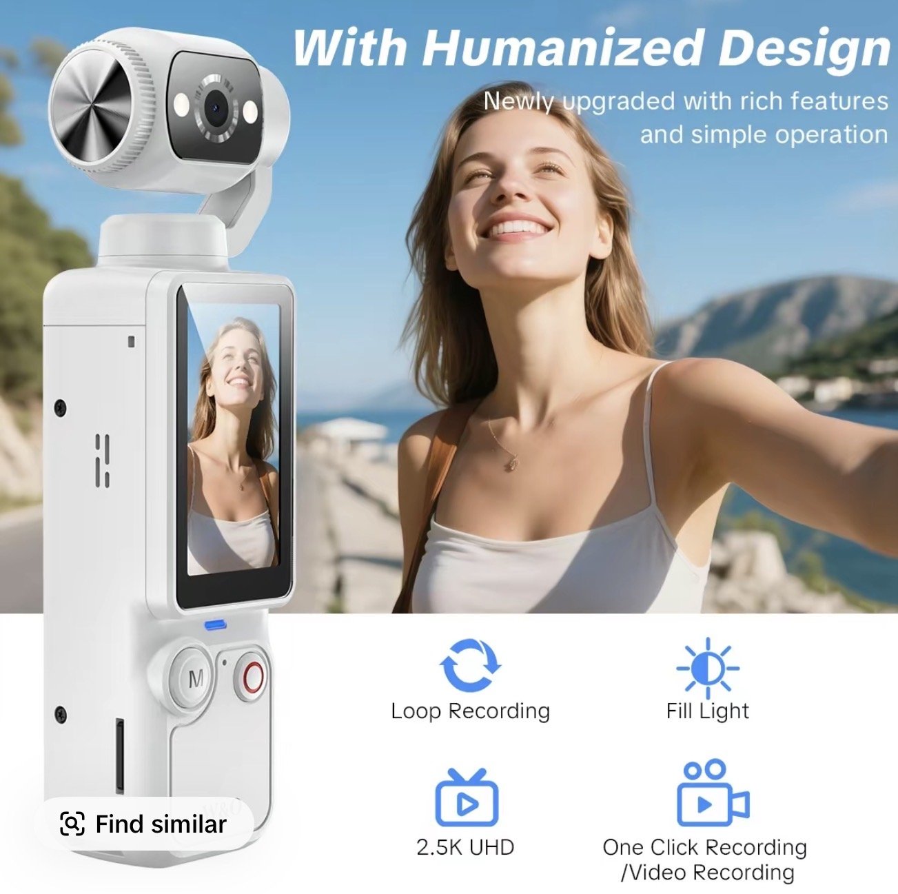 active W&O Portable 2.5K Ultra HD Video Recorder with 180° Rotating Lens, Handheld Stabilizer Pocket Camera, Full Body Camera for Vlogging, Travel & Daily Life Recording, USB Rechargeable, Black, Vlogging Camera, Modern Gadget, Durable Construction, Camcorder.